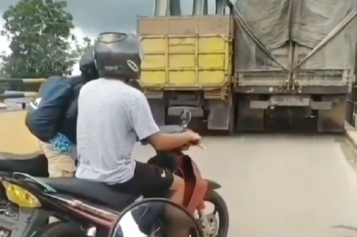 GridMotor.id - Buat pemotor, harus hati-hati sama truk yang melintas.
