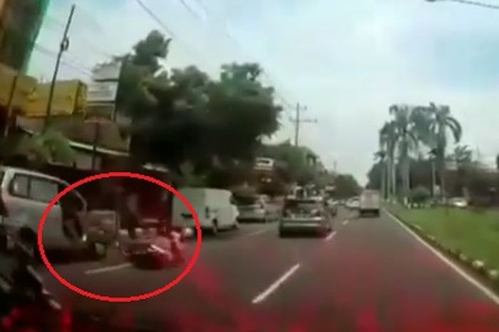 Gridmotor.id - Seorang pengendara motor mengalami nasib nahas akibat kelakuan pengemudi mobil yang sembarangan.