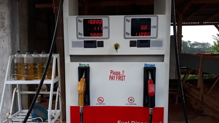Baik yang julan botolan atau yang menggunakan mesin yang sering dibilang Pertamini semuanya serempak turun harga.