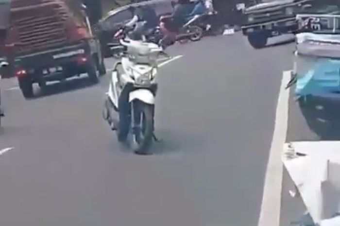Seorang emak-emak malah memberhentikan motor matic Honda BeAT di tengah jalan.