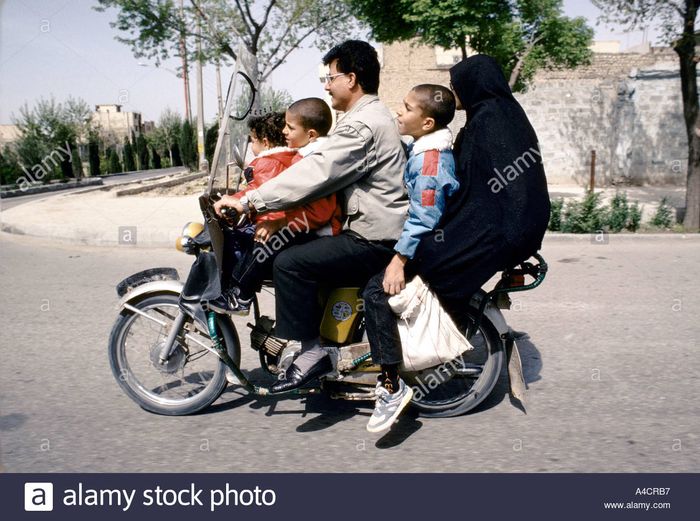 Sang suami nampak asyik membonceng isteri, dan ketiga anaknya.