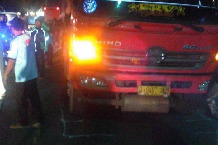 Dalam waktu bersamaan melintas juga kendaraan truk nopol B 9497 UFH yang dikemudikan oleh Asnadi (53).
