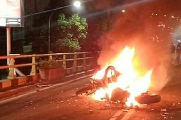 Gridmotor.id - Dua motor hangus terbakar setelah terlibat kecelakaan pada hari Sabtu (11/1/2020) lalu.