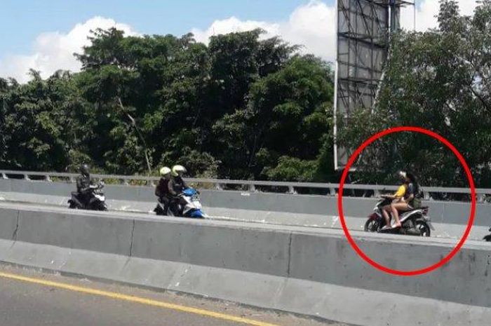 GridMotor.id - Dua cewek yang naik motor berusaha menghindari razia dari pihak kepolisian, nekat melawan arus di Jalan Layang Pasupati, Bandung.