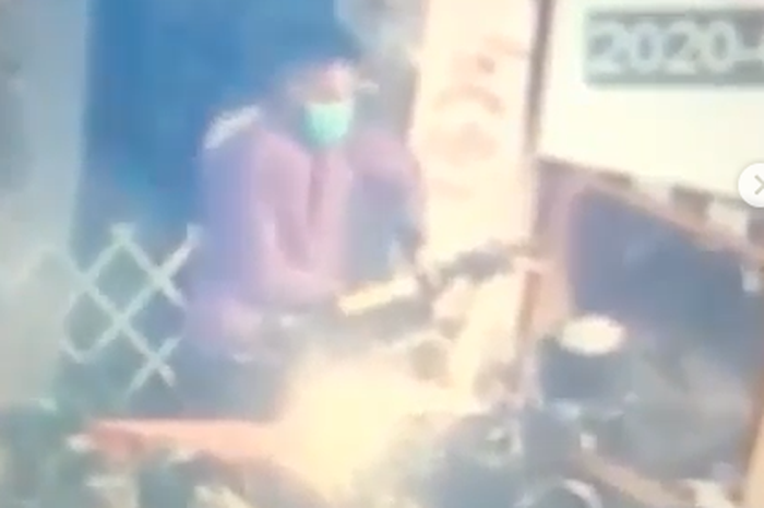 Terlihat di video, pelaku yang menggunakan masker itu masuk ke sebuah parkiran motor.