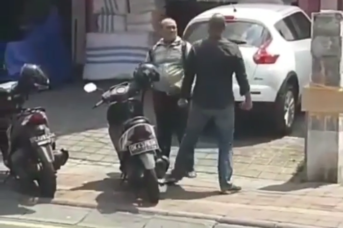 Dua pria tanpa rambut di Bali terlibat baku hantam di Jalan Setia Budi, Denpasar, Bali.