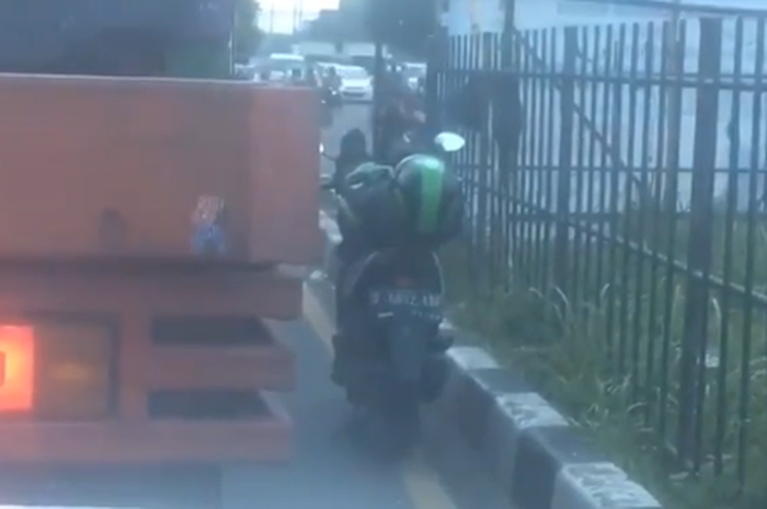 Gridmotor.id - Seorang driver ojek online (ojol) terekam kamera melakukan hal unik ketika menunggu lampu merah.