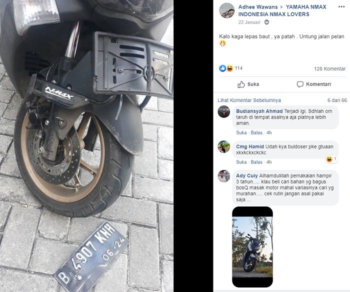 Postingan dudukan pelat nomor Yamaha NMAX patah yang diunggah Adhee Wawans menuai beragam komentar.