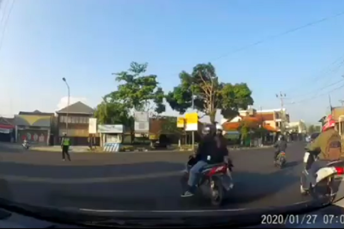 Pada video awalnya terlihat pengendara motor yang ingin berbelok di perempatan jalan.