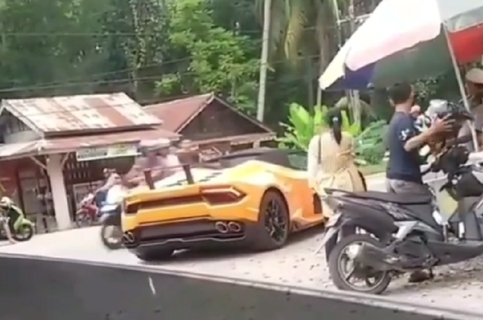 Sebuah video memperlihatkan Lamborghini roadster sedang berhenti di pinggir jalan.