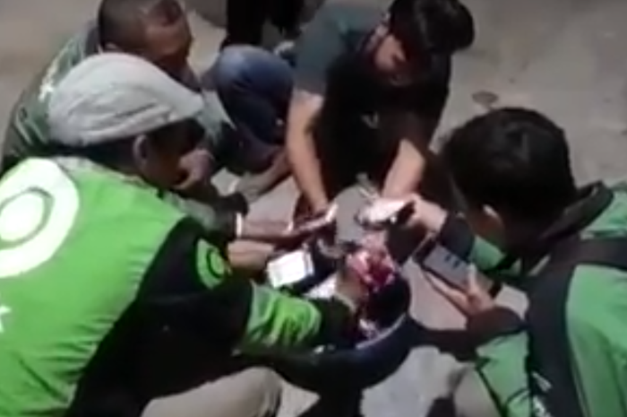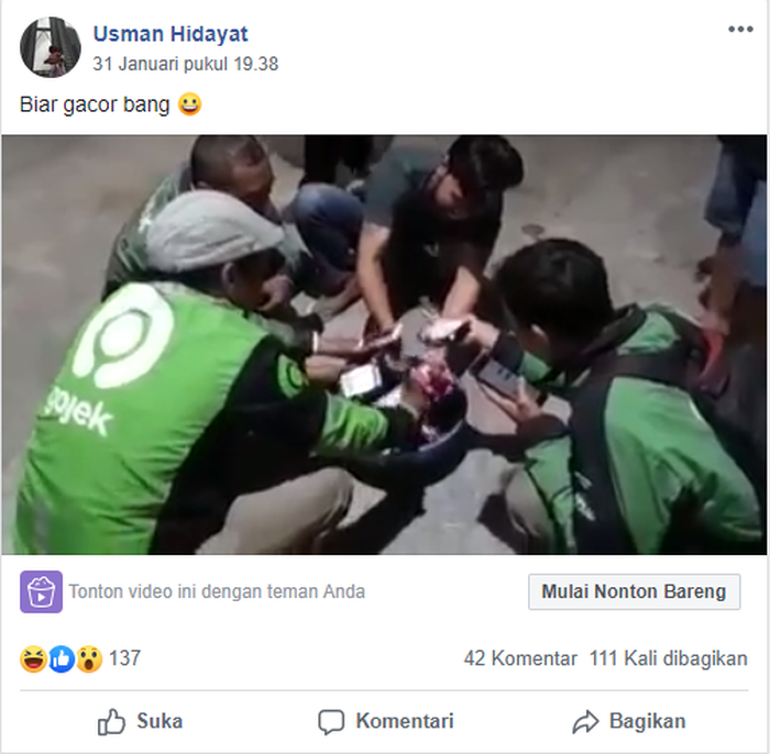 Pada video yang dibagikan Usman Hidayat ke grup FB KUMI INDONESIA (Komunitas Motor Online), memperlihatkan sekumpulan driver ojol mengerubungi sebuah baskom.
