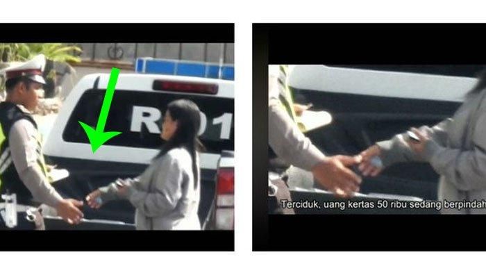 Pada video tersebut, terlihat polisi itu menerima uang Rp 50 ribu dari cewek berjaket abu-abu.