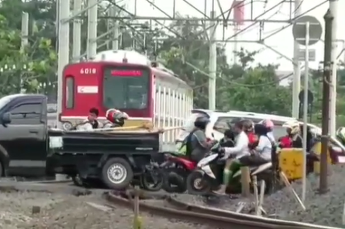 Pada video awalnya terlihat banyak kendaraan yang tengah melintasi perlintasan kereta api.