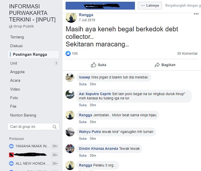 Beberapa netizen yang membaca postingan Rangga mengaku geram dengan ulah begal berkedok debt collector.
