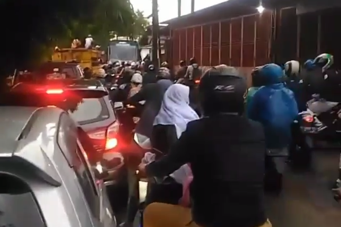 Puluhan pengendara motor bernafsu menyelip dari sebelah kanan sampai membuat kemacetan parah.