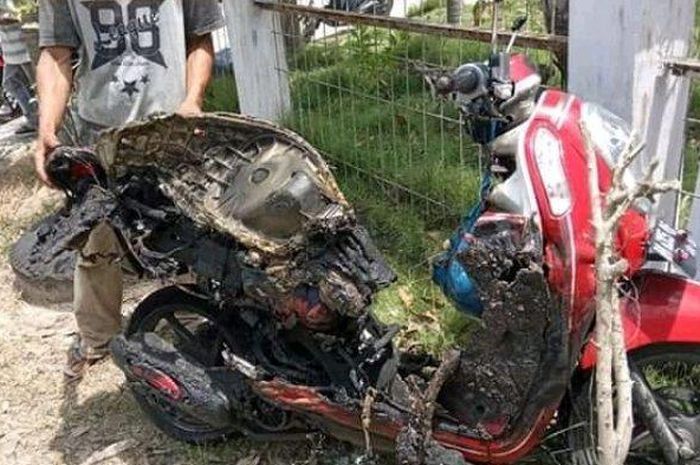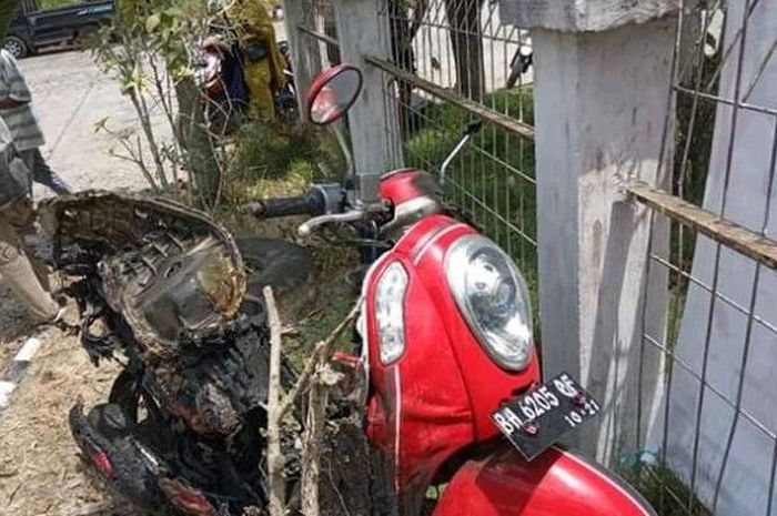 Gridmotor.id - Usai mengisi Bahan Bakar Minyak (BBM) di Pom Bensin Pembengis, Kecamatan Bram Itam, Kabupaten Tanjung Jabung Barat (Tanjabbar), Jambi, tiba-tiba skuter matik Honda Scoopy ini dilahap si jago merah.