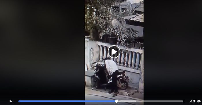 Saat dirasa aman, pelaku langsung naik ke skutik paling laris ini yang posisi setangnya di kunci ke sebelah kanan.