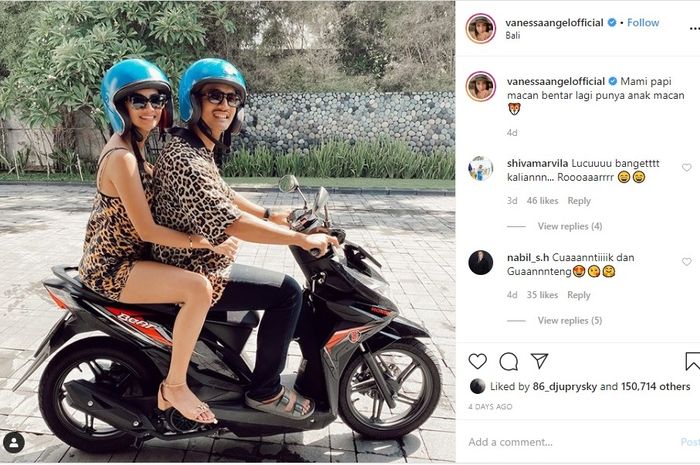 "Mami papi macan bentar lagi punya anak macan," tulis Vanessa di postingannya melihat keterangannya foto itu diambil di Bali, beberapa waktu lalu.