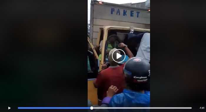 Mobil box yang berisi paket diduga melakukan tabrak lari yang berujung pada kemarahan warga sekitar.