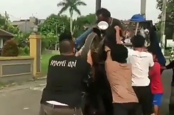 Warga setempat yang melihat kejadian tersebut dengan sigap membantu petugas tersebut yang terlihat panik.