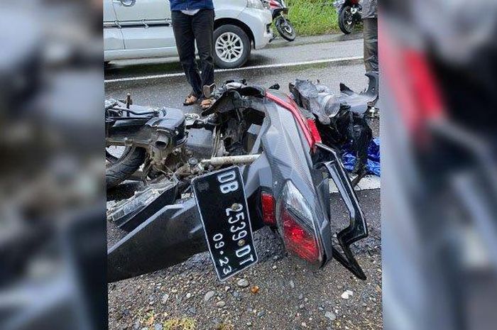 Mereka tewas setelah sepeda motor Yamaha Mio M3 bernopol DB 2539 DT yang dikendarai keduanya bertabrakan dengan mobil Toyota Innova bernopol DB 1605.