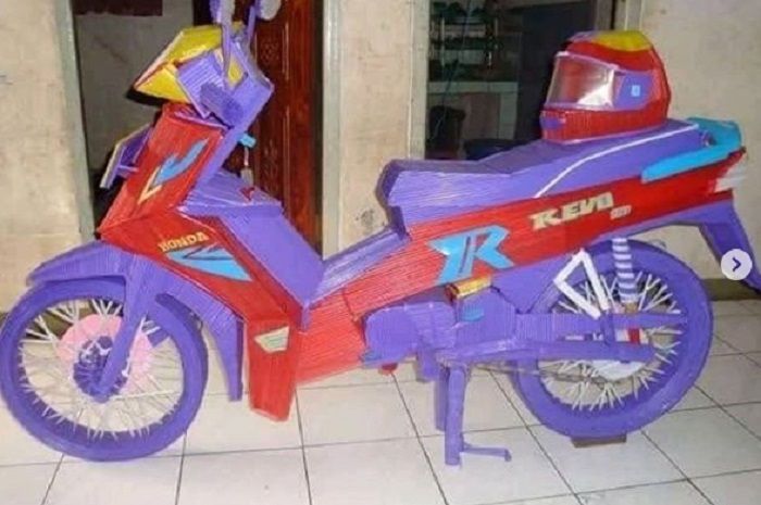 Di tangan lelaki ini, limbah sedotan disulap menjadi beragam bentuk pajangan termasuk satu unit Honda Revo.