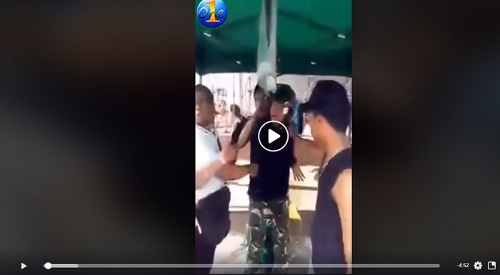 Tanpa rasa takut, puluhan warga melayangkan pukulan dan anggota TNI nampak ketakutan.