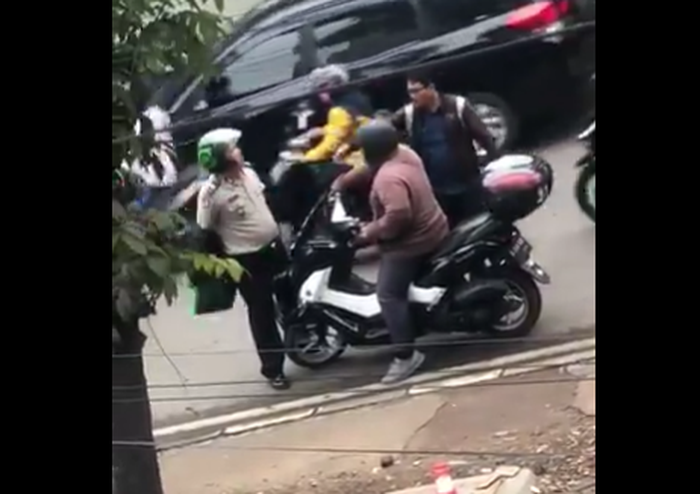 Pada video terlihat seorang pengendara Yamaha NMAX berwarna hitam sedang diberhentikan oleh driver ojol.