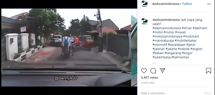 Kecelakaan ini terekam dashcam mobil dibelakangnya dan diunggah akun Instagram @dashcamindonesia (19/02/2020)