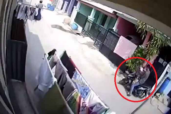 Karena tahu motornya dibawa orang, korban lalu keluar dan berusaha menangkapnya.