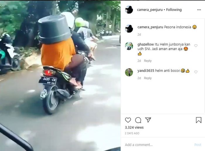 Lain kali yang dipakai helm SNI ya ibu, bukan baskom SNI.