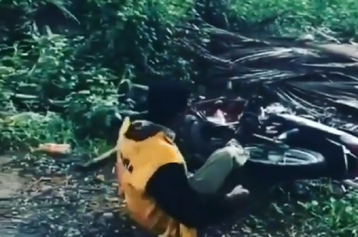 Pria itu tidak terima kalau dirinya ditilang, sehingga motor yang dipakai dia lempar.
