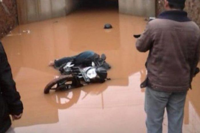Ia diduga mengalami kelelehan mendorong sepeda motor saatnya terjebak banjir besar.