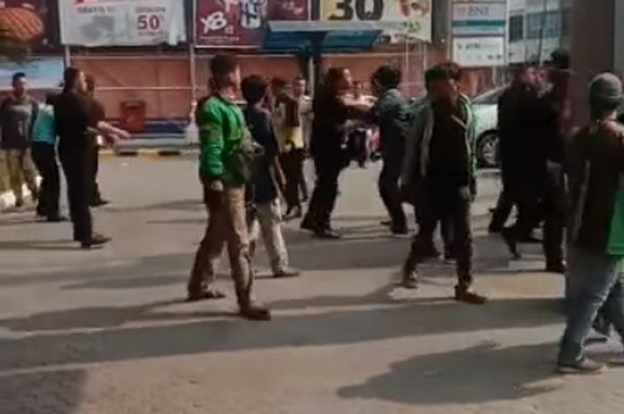 Dalam video amatir berdurasi 35 detik yang beredar, terlihat sekelompok driver ojek online (ojol) berkumpul di depan Thamrin Plaza Medan.