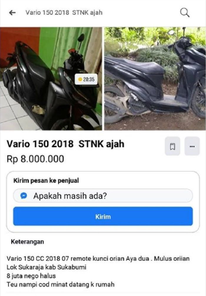 Dan ternyata motor malah dijual dan postingan jualan motor hanya dilengkapi STNK banyak beredar di Facebook.