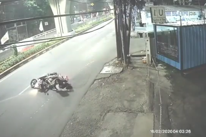 Sekumpulan remaja naik Honda BeAT mendadak nyungsep di Jalan Kapten Tendean, Jakarta Selatan.