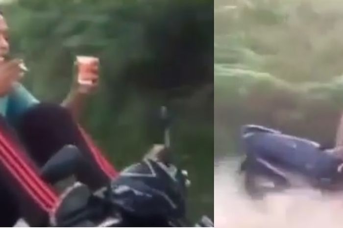 Kalau bawa motor ya harus fokus dengan keadaan dan jalanan bukan malah kelewat selow seperti ini.