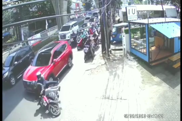 Gridmotor.id - Video detik-detik terjadinya kecelakaan antara pemotor dengan pengemudi mobil terekam kamera CCTV.