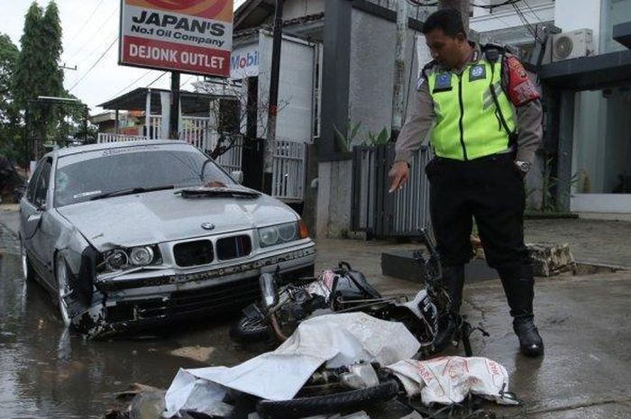 Petugas kebersihan dari UPT Kedaton Dinas Lingkungan Hidup Kota Bandar Lampung tewas diseruduk mobil BMW.