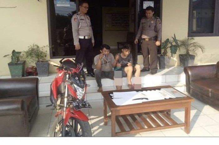 "Kemudian tersangka yang posisinya di depan memutar kunci kontak motor korban hingga mati dan tersangka yang duduk diboncengan menarik kuncinya hingga terjadilah tarik menarik antara korban dan tersangka sampai terputusnya kunci kontak korban," ujarnya.