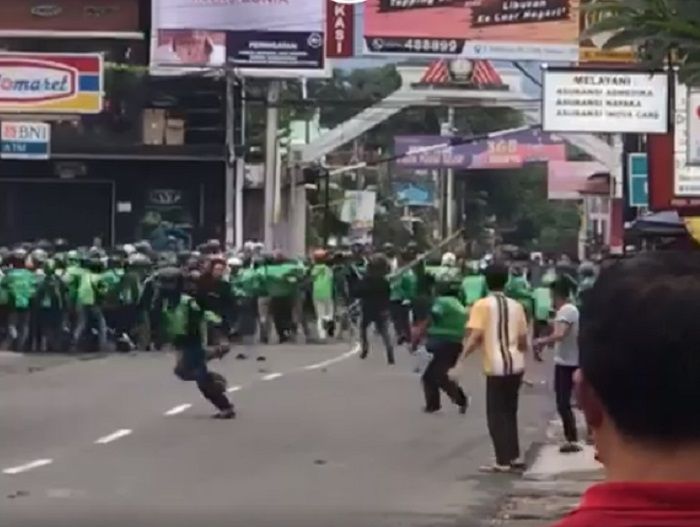 Ratusan driver ojol terlibat kericuhan dengan debt collector yang meluas ke beberapa ruas jalan.