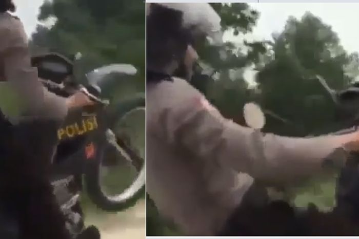 Bayangkan jika biasanya aksi wheelie (angkat ban depan motor sambil jalan) dilakukan oleh para ahli atau freestyler kali ini dilakukan oleh seorang anggota POLRI.