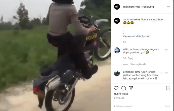 Aksi ini diunggah di Instagram @anakmotorhits (03/03/2020)