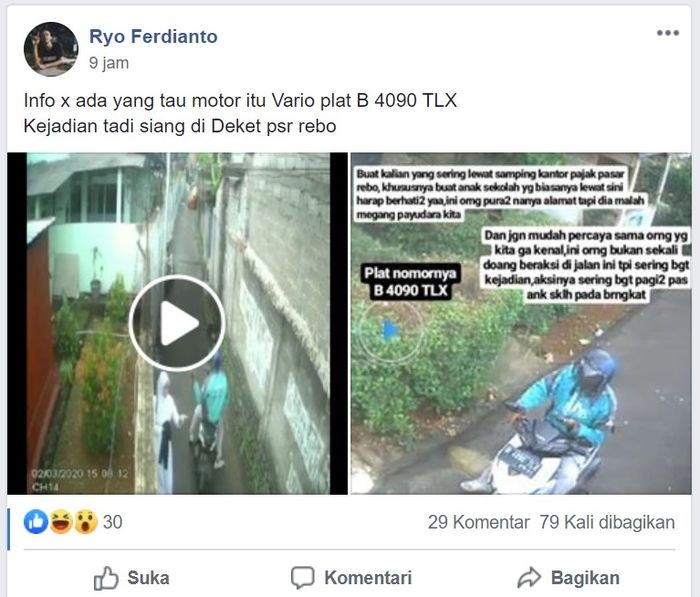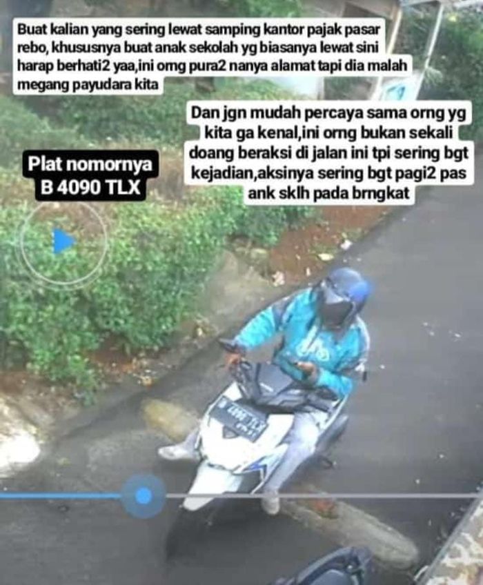 Spesialis pegang buah dada perawan ini menggunakan motor matic Honda Vario putih dengan pelat nomor B 4090 TLX.