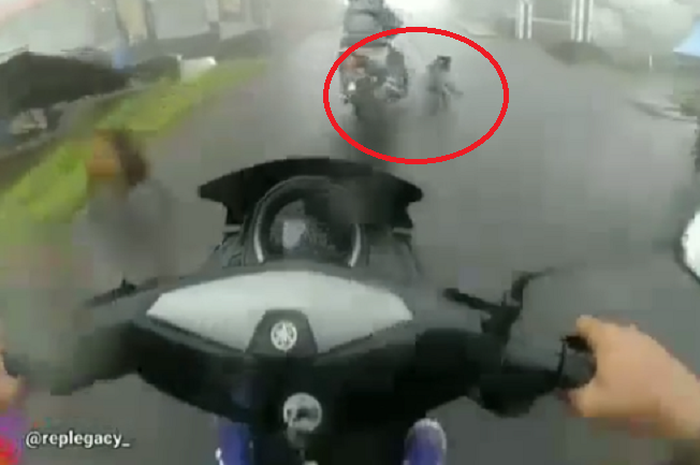 Di depan perekam, berjalan temannya dengan motor Yamaha Jupiter Z.