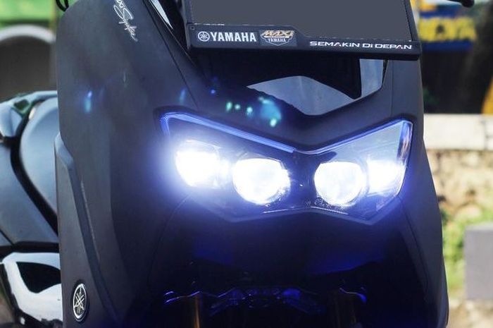 Meski pancaran sinar lampu utama All New Yamaha NMAX lebih terang dibanding NMAX lama namun yang suka jalan malam dipasangi proyektor Toyota Velfire