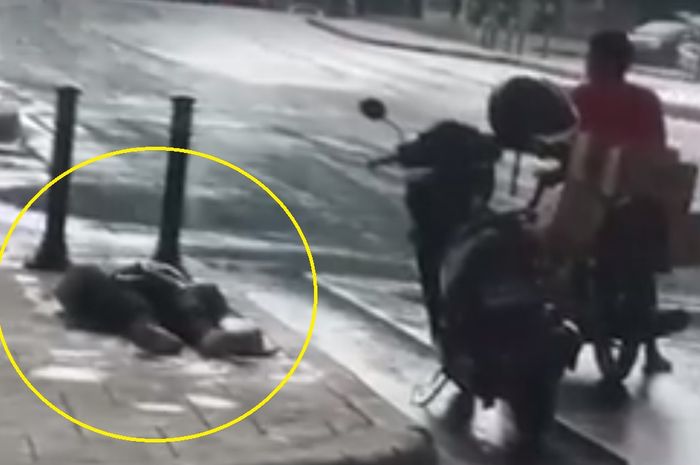 Isi video tersebut menampilkan pemotor yang tergelatak di trotoar lampu merah.