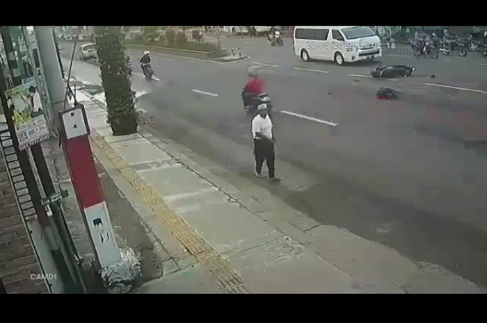 Tanpa lihat kiri dan kanan, pemotor itu tancap gas melintas persimpangan itu.