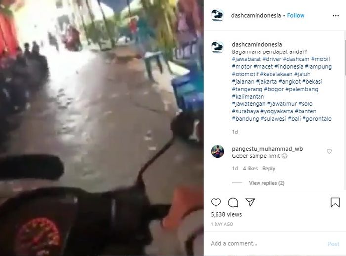 Kejadian ini sengaja direkam oleh pemotor yang dibonceng dan diunggah di Instagram @dashcamindonesia (26/03/2020).
