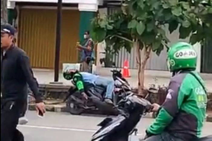 Kejadian ini terlihat di video yang diunggah di facebook ada driver ojol tergeletak diatas motor secara tidak wajar.